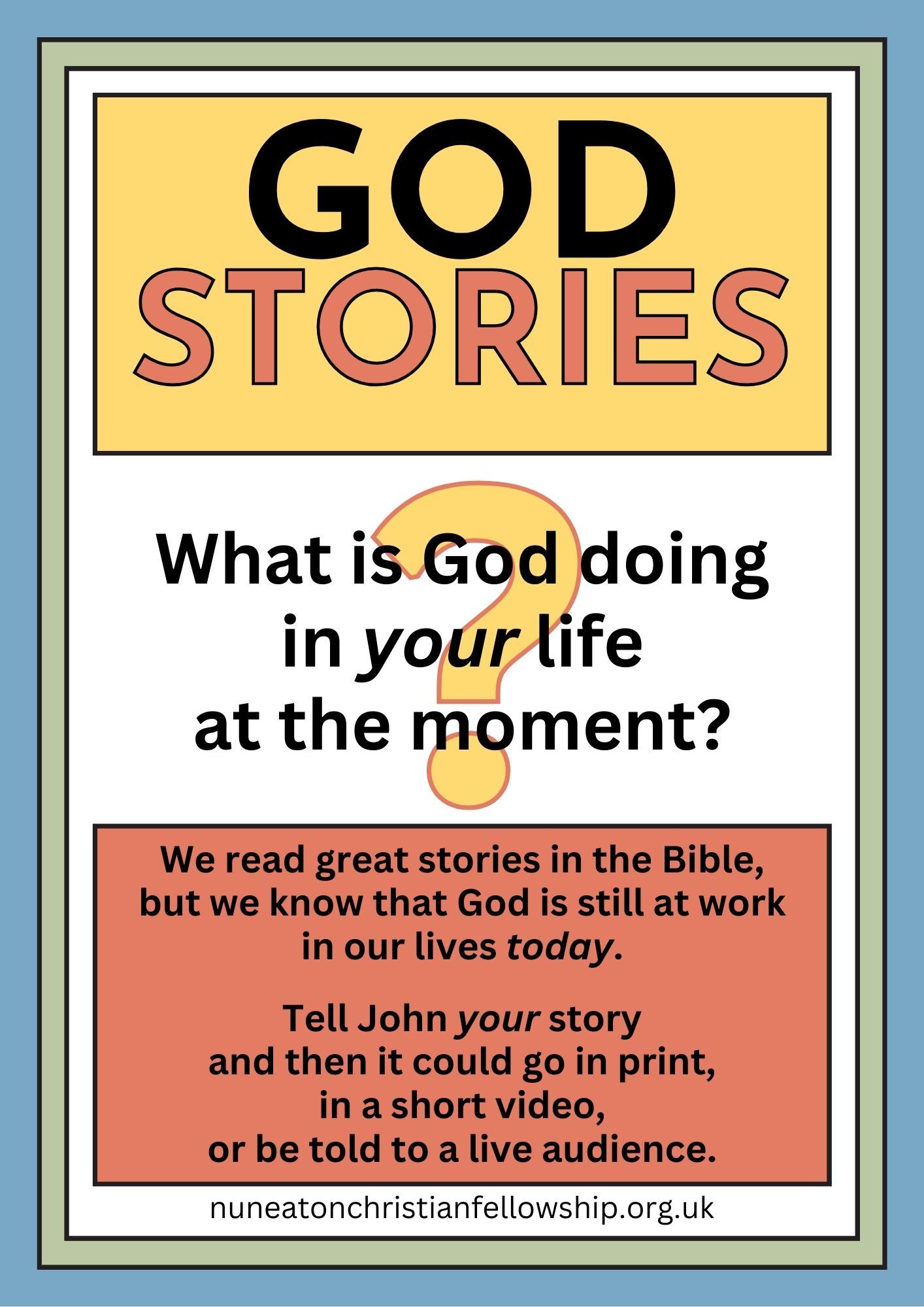 Nuneaton Christian Fellowship is a group of people of different ages and backgrounds who have been transformed by following Jesus.
